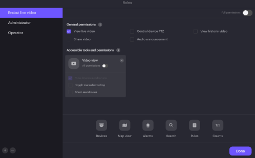 Device Permissions: (välj den Role som vi skapade i förra steget) Endast live video