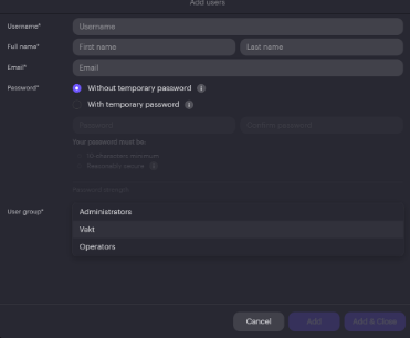 Tryck på "+” tecknet i User menyn för att skapa ett nytt användarkonto.